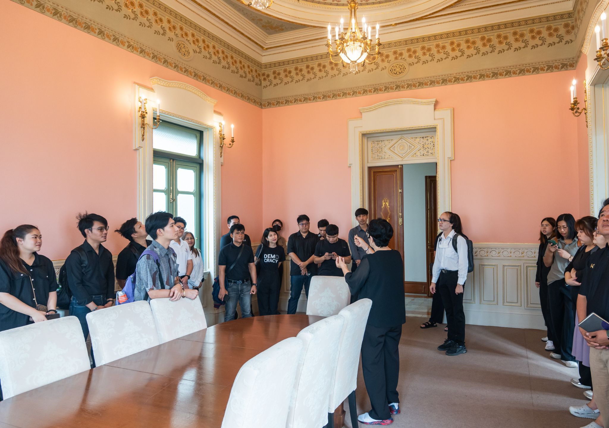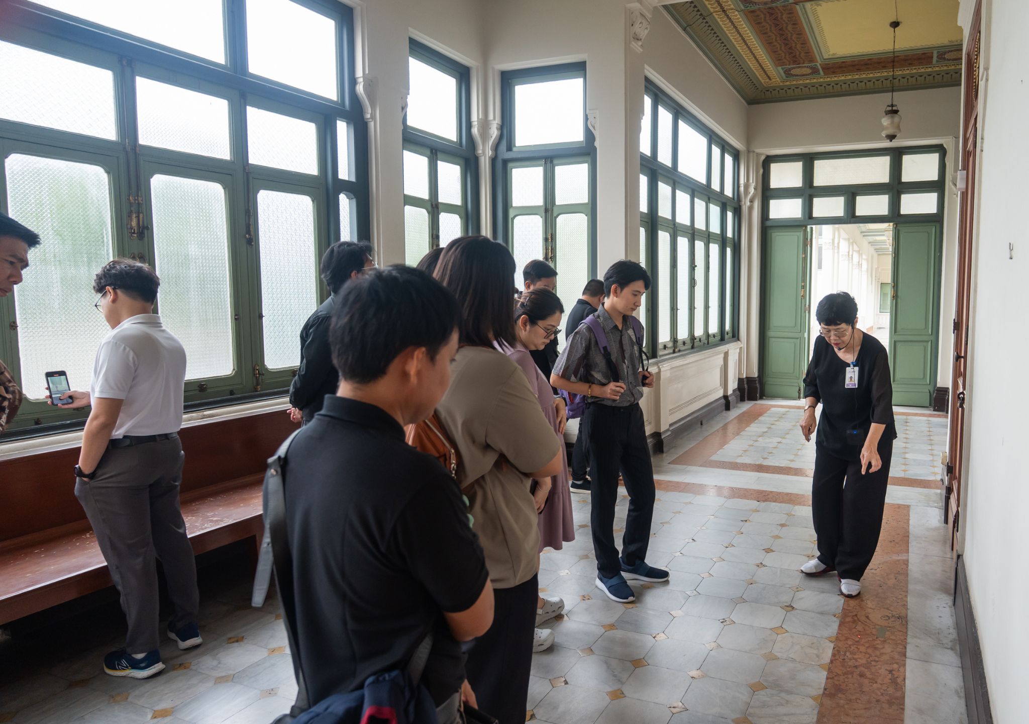 วันเสาร์ที่ 8 พฤศจิกายน 2568 หลักสูตร (รป.ม.) การพัฒนาและจัดการมหานครอย่างยั่งยืน ผศ.ดร.แสน กีรตินวนันท์ ผู้รับผิดชอบรายวิชา 3091209: องค์การและการจัดการเมืองอัจฉริยะ นำทีมนักศึกษา ป.โท หลักสูตรดังกล่าว เข้าศึกษาดูงาน ณ พระราชวังพญาไท ซึ่งเป็นหนึ่งในสถานที่ที่มีความสำคัญ ทางประวัติศาสตร์และเป็นแบบอย่างของการบริหารจัดการพื้นที่เมืองในอดีตของประเทศไทย การศึกษาดูงานในครั้งนี้มุ่งเน้นการเรียนรู้เกี่ยวกับการจัดการองค์การในบริบทของเมืองและความสำคัญของแนวคิด “เมืองอัจฉริยะ” (Smart Cities) ที่นำไปสู่การพัฒนาเมืองอย่างยั่งยืนในยุคปัจจุบัน ซึ่งนักศึกษาได้รับฟังการบรรยายจากวิทยากรผู้เชี่ยวชาญในหัวข้อที่เกี่ยวข้องกับการจัดการเมือง ทั้งในแง่ประวัติศาสตร์และการนำเทคโนโลยีมาใช้เพื่อพัฒนาสังคม นอกจากนี้ นักศึกษายังได้มีโอกาสแลกเปลี่ยนความคิดเห็นเกี่ยวกับการประยุกต์ใช้แนวคิดดังกล่าวในบริบทของการพัฒนาเมืองไทยในอนาคต ซึ่งเป็นการกระตุ้นให้เกิดความคิดสร้างสรรค์ และสร้างแรงบันดาลใจในการศึกษาอย่างมาก