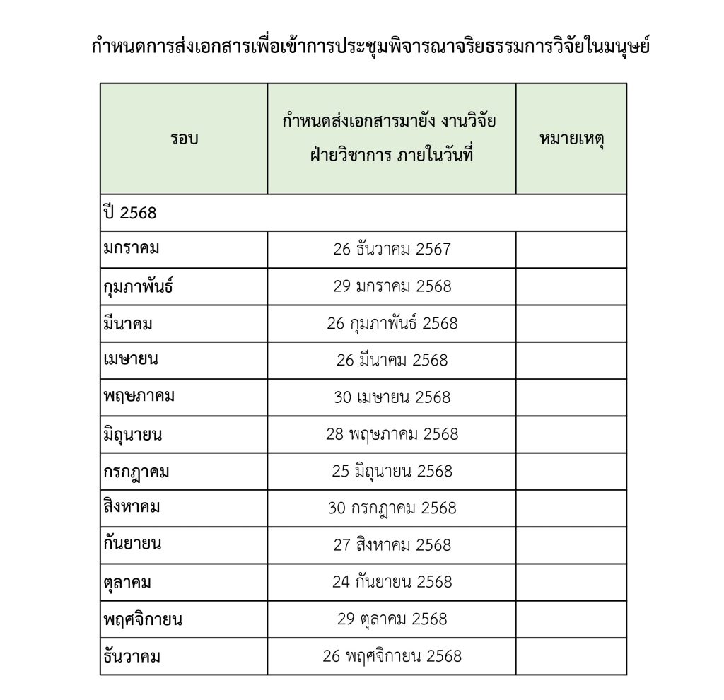 กำหนดการประชุมพิจารณาจริยธรรมการวิจัยในคน ประจำปี 2568